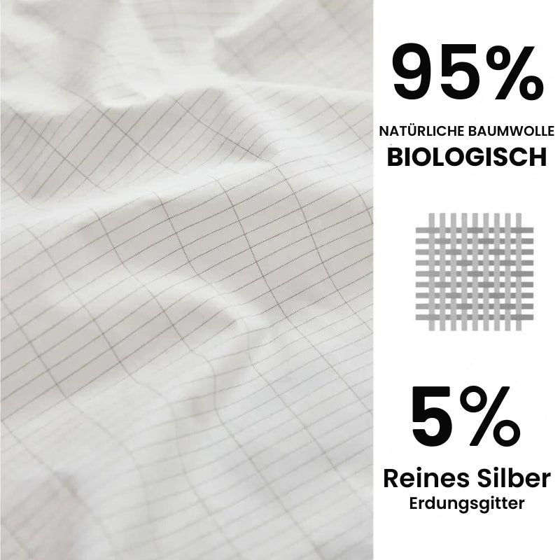 Das Erdungswohl™ Bettlaken leitet die Elektronen der Erde über das Erdungskabel direkt in dein Bett. Dies ermöglicht es dir, die Effekte der Erdung während deines Schlafs zu genießen.